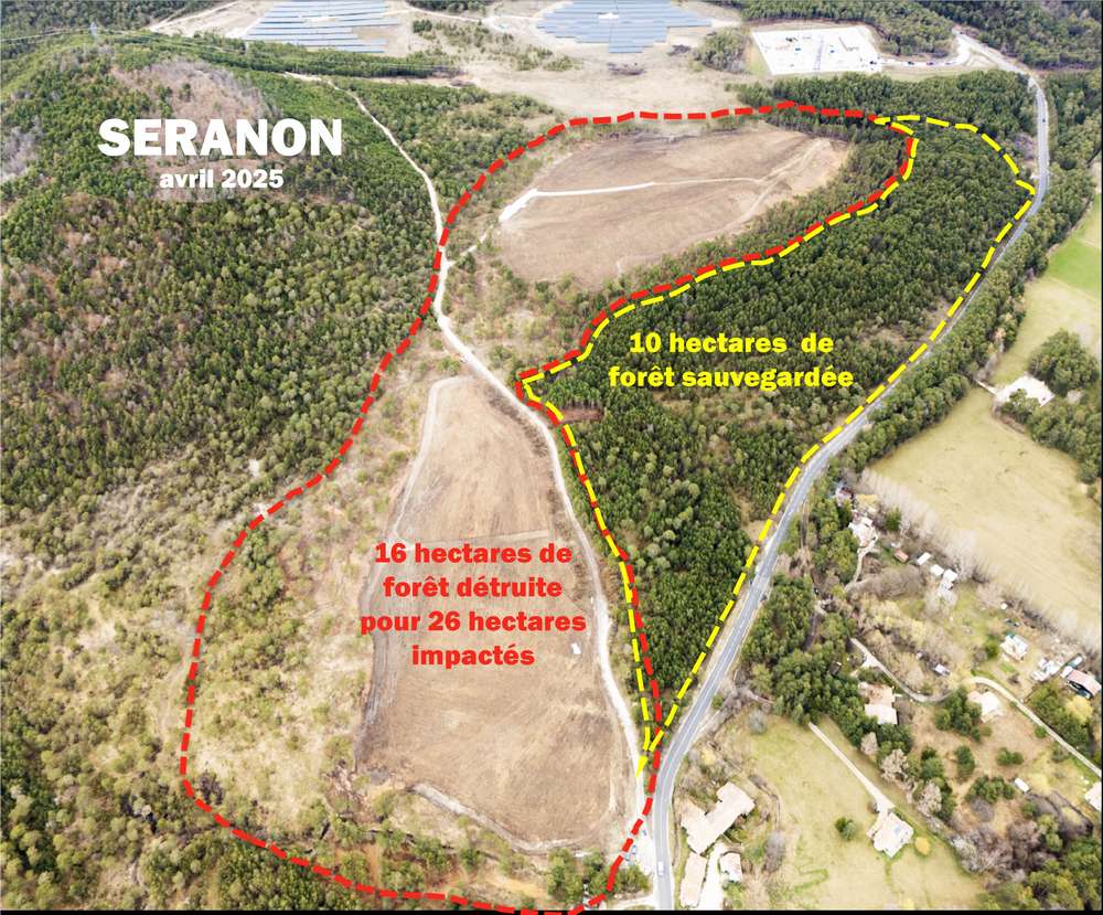 Nous avons commencé à travailler sur le dossier de la centrale photovoltaïque de Séranon au moment où les abatteuses arrivaient pour détruire 16 ha de forêt.